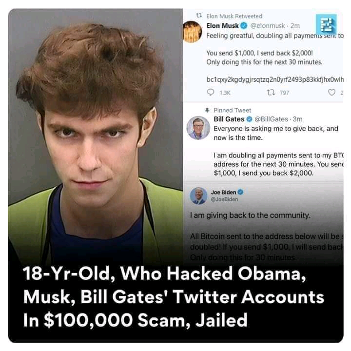 An 18-year-old hacker from Florida, who hijacked over 100 Twitter accounts belonging to personalities including Barack Obama, Elon Musk, Bill Gates, Joe Biden, and Kim Kardashian, as part of a Bitcoin scam, has been jailed for three years.